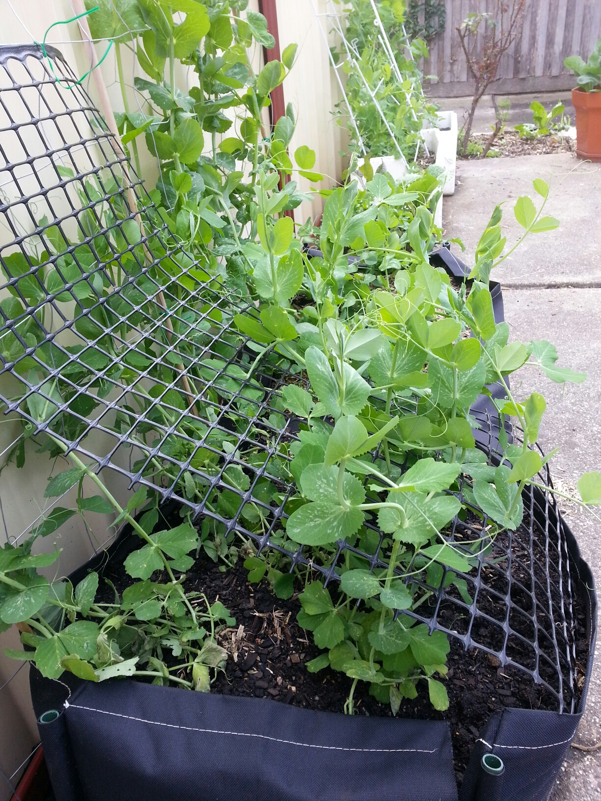 The Sugar Snap Peas are the ones the we dug out in order to move the heavy planter…. they have bounced back really well- without a single casualty!
