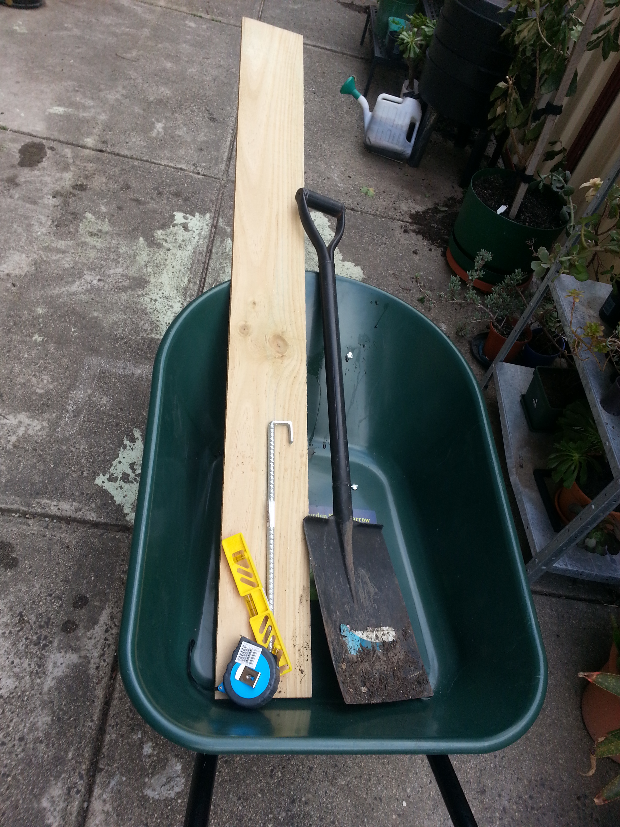 So, knowing I would need a wheel barrow to move the 3000L of Pine Bark required for this reno, I went to Bunnings to buy a cheap one….